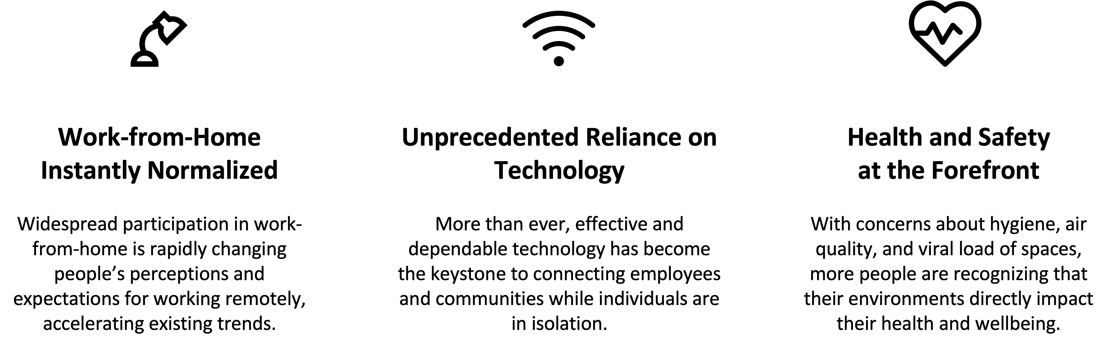 The global pandemic has rapidly transformed the way we live and work. Employees have been affected not only in where, but also how we work together. What are the major shifts in our behaviors and expectations that will define our future workplace?